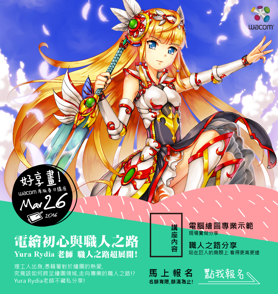 - 憑三月底前至Wacom專賣店:原版資訊購買Wacom繪圖板(不限型號)或繪圖螢幕,持發票或產品序號於線上報名,即可享有VIP席資格。未提供以上資訊者仍可報名,惟因座位有限,不保證提供座位。